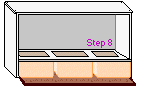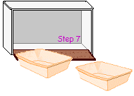 When you have attached the back to the sides, position the top piece and pre-drill the holes, then attach the top. Position the front edge of the top with the front of the sides; the top will probably extend slightly past the edges. Then, turn the piece over and attach the bottom. You have now built, all by yourself, a bathroom for your cats. We put rubber feet on the bottom of the box to make sure it wouldn't scratch the floor. And I covered the rough edges with 1" iron-on edges to give it a more finished look. |