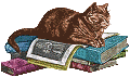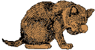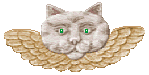 The first two cats were adapted from postage stamps; the bureaucat was a cartoon I'd drawn a long time ago and forgotten; the cat with wings began as a piece of jewelry; that's my cat Libby on the wall at the bottom of the page. The rest began as B&W copyright-free images. All were enhanced by Glenda Moore.