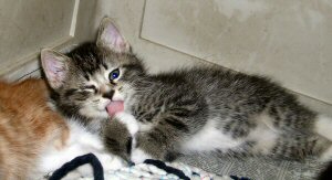 ![]() "My thumb tastes just fine, thanks." Sent in by Kathleen, whose family is fostering the kittens |