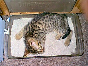 ![]() "She won't let me sleep in the bed, so I have to make do." Timex, sent in by companion Erin |