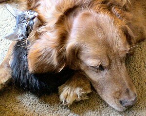 ![]() "If your ear was a little longer, it would make a great blanket!" Teagan (dog) and foster kitty Dolly; sent in by Kathryn |