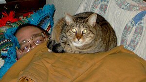 ![]() "Don't expect to nap alone in our house!" Toesy and companion Bob |