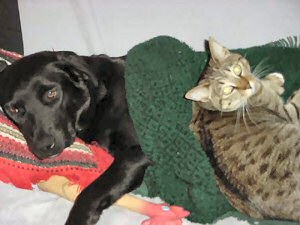 ![]() "The cat scan and the lab tests were all negative" Toesy (polydactyl) and Qi-Qi (lab), sent in by companion Bob |