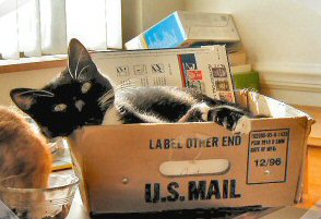 ![]() CatStuff's Tuxedo ready for the daily trip to the Post Office |