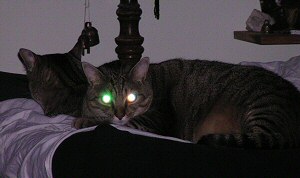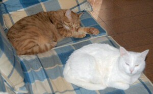 ![]() "If I wait long enough, I can just sneak my paw over and push Macchia right off the sofa...." Rusty and Macchia, sent in by companion Alberto |