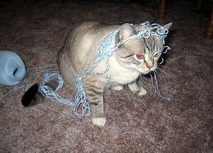 ![]() It appears that Kilo lost his battle with the string. Sent in by owner Jennifer Berry |