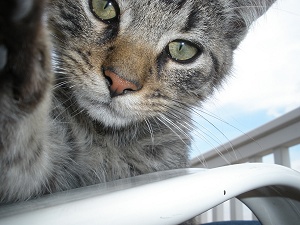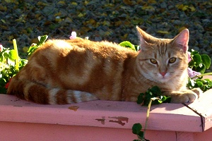 ![]() This stray cat is named Stripes. He ruined the flowers, but made a cute photo. Sent in by Ken |