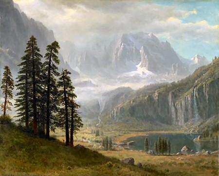 ![]() Geysers in Yellowstone Park (1881) (26.25 x 36.5 in.) Bierstadt's work inspired President Chester A. Arthur to travel to Yellowstone National Park in 1883 to see the natural wonders. |