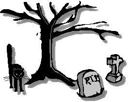 our spooky cemetary! Note that there is background music on the page. Wait until the scene fully loads, then move your mouse slowly over the headstones. |