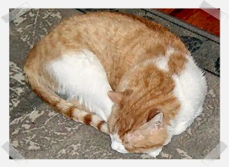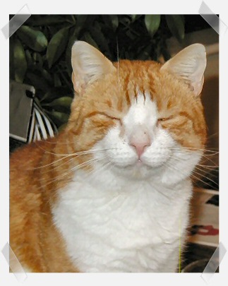 2003. We had been noticing him in the backyard, drinking from the pond. My husband became friendly with him, and eventually OC would eat from his hand. One day we saw that the cat's hips and legs were dark - as though he'd sat in a puddle of oil. We brought him inside, then took him the next morning to the vet. She confirmed that he was covered in oil, and said that eventually all his fur would fall off. So, we brought him home, confined him to the bathroom, and took care of him while he went bald. In due time, his fur grew back, and he was neutered and joined the family. Unfortunately, he's a loner in the midst of a bunch of cats that he doesn't understand. He doesn't seem capable of socializing - he is as likely to swat at a passing cat as he is to ignore it. At most he is tolerated by the others; at worst, he's avidly disliked. He doesn't like Merlin at all, and is the bane of that cat's existence. O.C's ideal home environment would be one woman, no other pets - he is definitely devoted to me, and has long conversations with me. He has the loudest purr of any cat I've ever known - huge, raspy, wonderful. It's now been 7 years, and OC has mellowed a lot. He's not so likely to stalk another cat and hit them, though if he's "in a mood," he'll hit just for the heck of it - I think he's "having fun." |