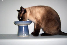 food dish pedestal for the cat I love this idea! Having the food dish at shoulder height just seems so much more comfortable for a cat! (We've had our cats' dishes elevated for quite a while and they really seem to enjoy it.) |